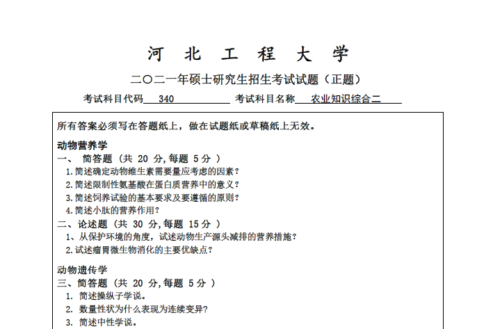 340-农业知识综合二(河北工程大学2021年硕士研究生招生考试试题).rar