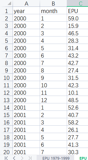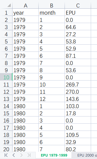数据集-中国经济政策不确定性指数1979-2021excel版本已整理好,可直接复制使用!!!