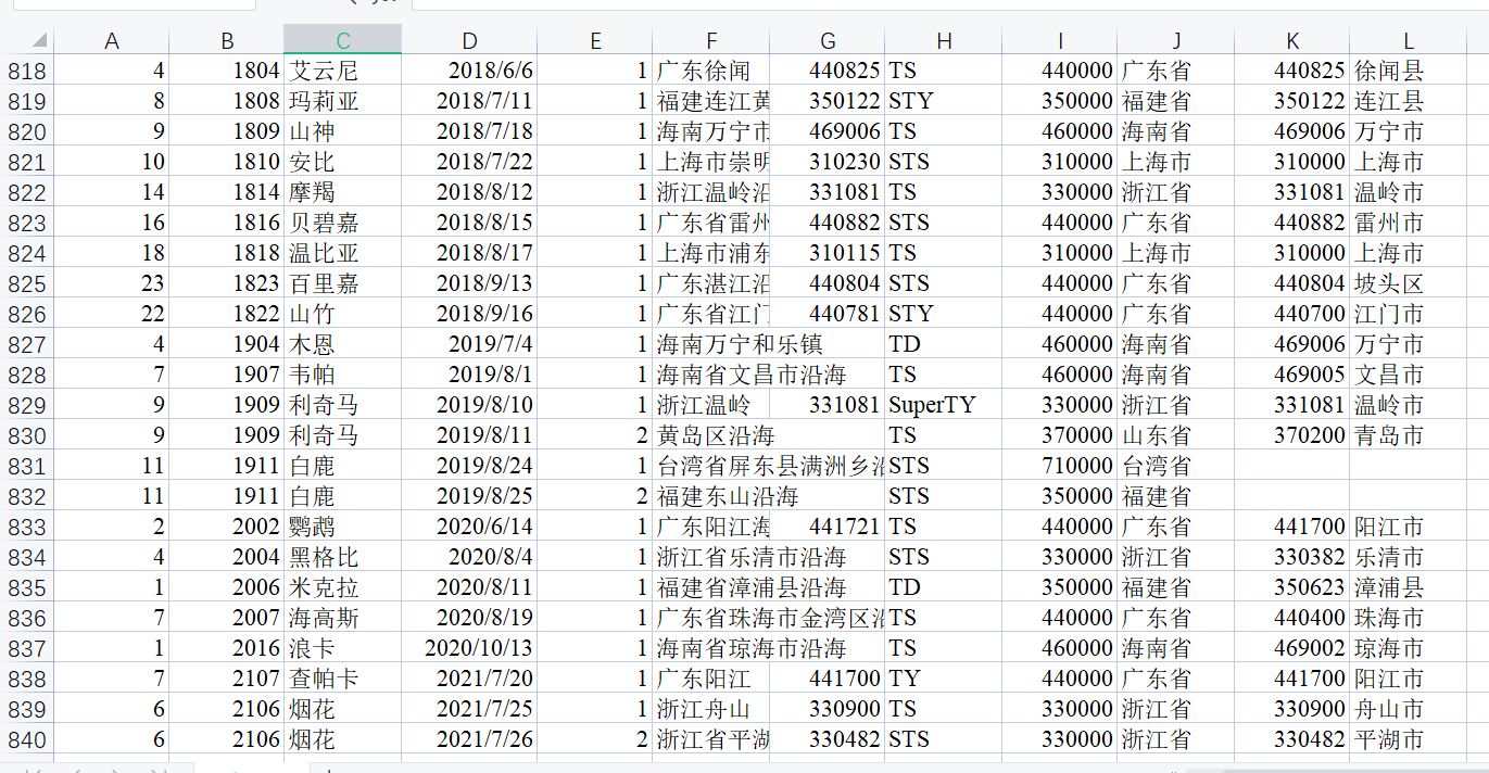 1949-2021年中国台风数据!1949-2021年中国台风数据!1949-2021年中国台风数据!