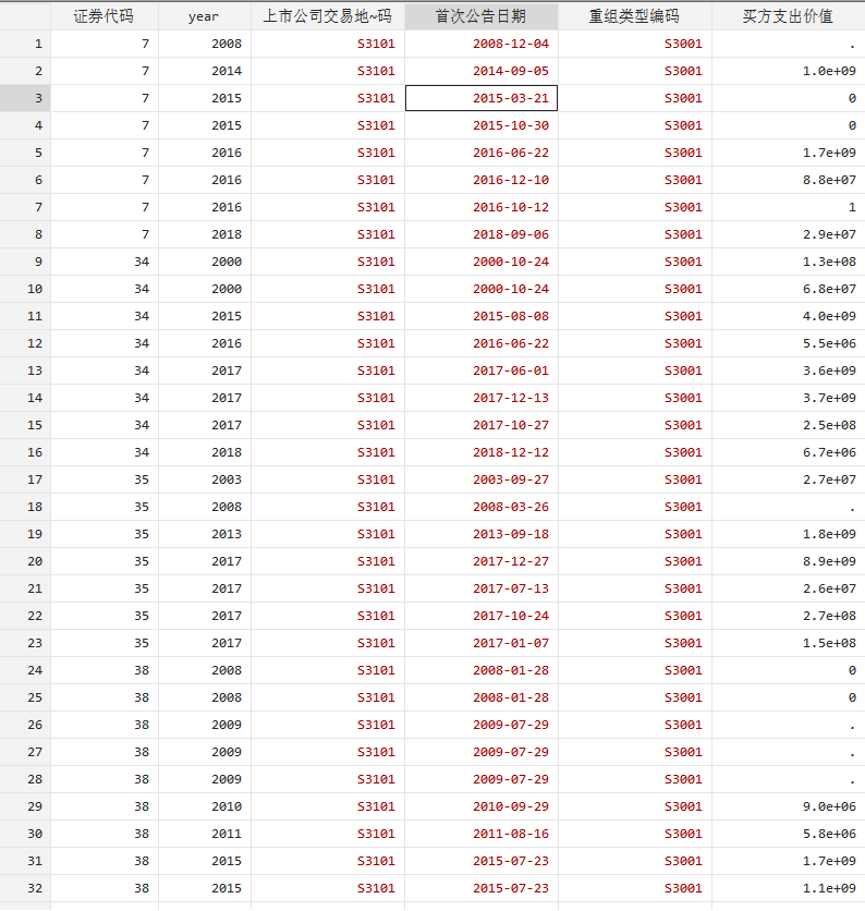 这是企业收购并购的数据