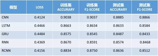 最终建立贝叶斯、BP神经网络、SVM、随机森林、XGBoost的分类模型,同时以词嵌入作为特征,建立CNN、LSTM、RNN等深度学习算法预测模型。