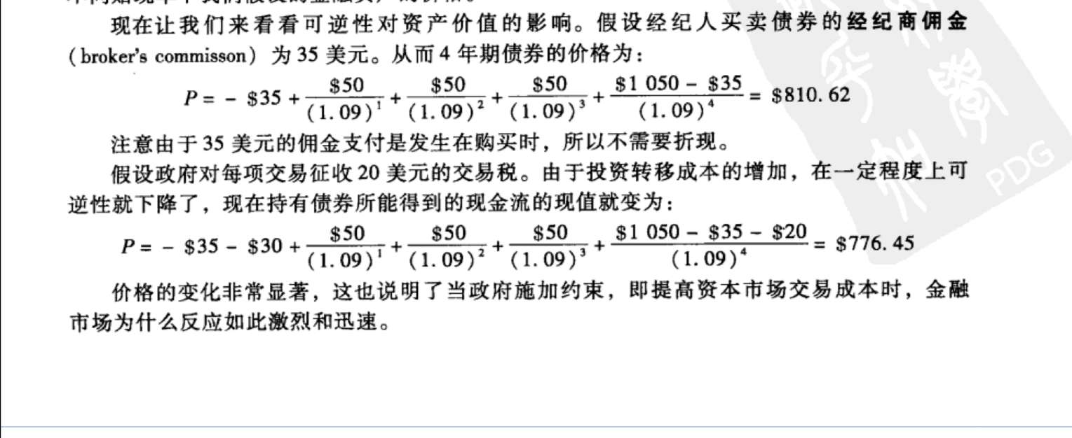 题目看起来很简单,如图所示。就是一个固定收益证券的定价问题,这个证券每年给35元,4年后还本1000元。但是要收佣金或税35元,此时要怎么定价。不考虑佣金一切都好说,就贴现一下嘛。但是考虑佣金以后,直接减去佣金我明白,为什么还要再减一个佣金4年期的贴现呢?有人解释是,35元因为被收走,没有参与投资,所以产生了投资收益的损失,所以要减去。这显然不对,这个机会成本应该是4年期的投资收益,既35*1.09^4—35,减去这个数才对。题目给的公式含义就是四年后还本时又收了佣金或税。难道都还本了还要收佣金?<br>