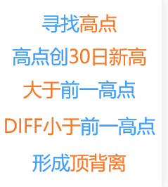 最后的条件是:K线创新高的同时,对应的DIFF值小于前一个高点。