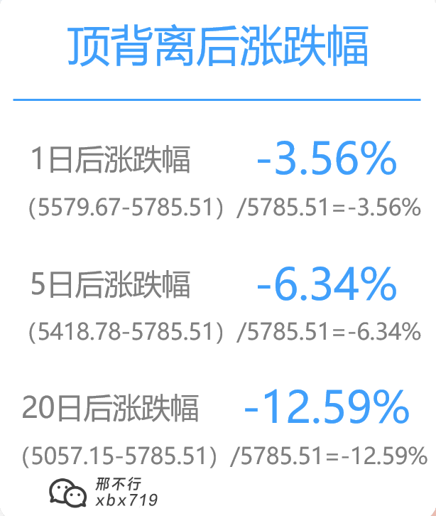 如上图中在发生顶背离后,我们统计其未来1天、5天、20天的涨跌幅。
