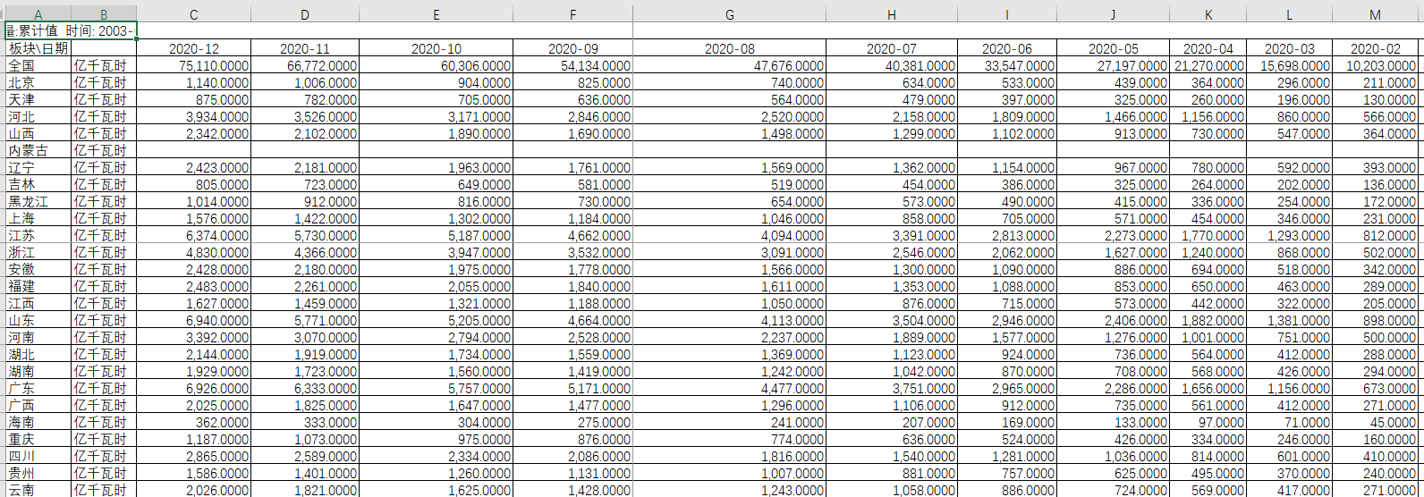 (4)分省份发电量/用电量累计值(月)1990-2020年