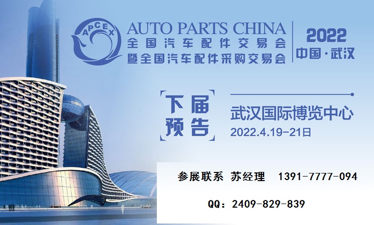 由全国工商联汽车摩托车配件用品业商会和易通全联(北京)国际展览有限公司组织的2022年春季的"全国汽车配件交易会暨全国汽车配件采购交易会"定于2022年4月19日—21日在武汉国际博览中心举行。
