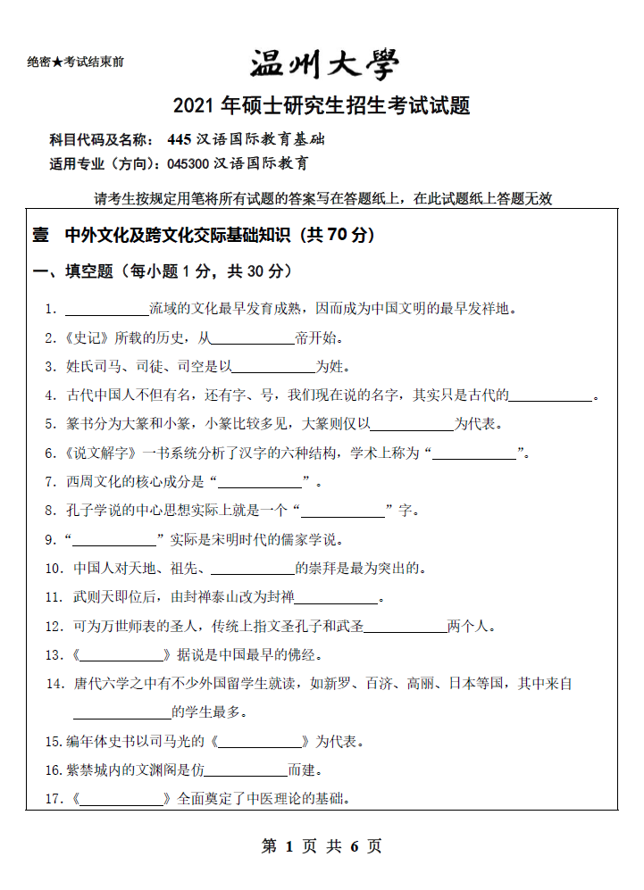 445 汉语国际教育基础(温州大学2021年硕士研究生招生考试试题).pdf
