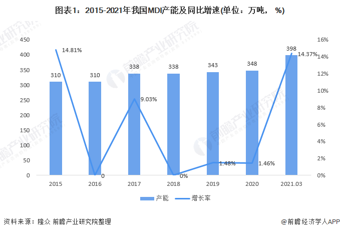 1、2021年我国MDI产能同比增长