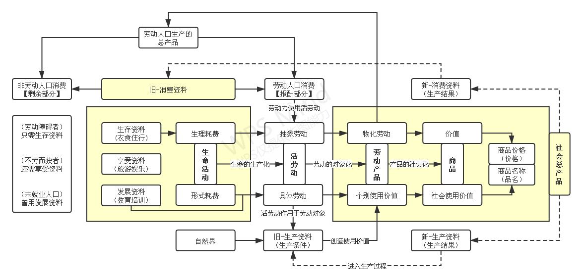 全体劳动者生产的总产品=全体劳动者消费的总产品+全体非劳动人口消耗的总产品