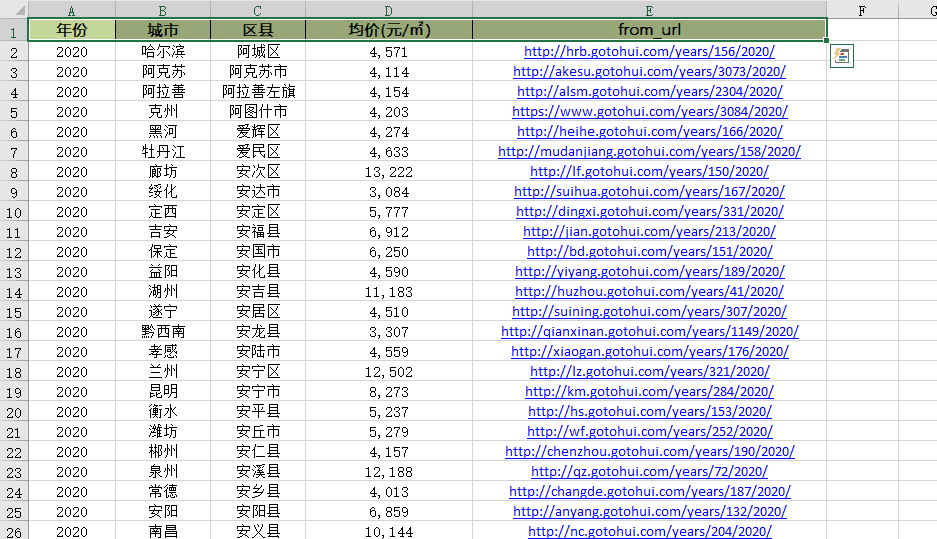 1、数据来源:https://www.gotohui.com/(区县房价)