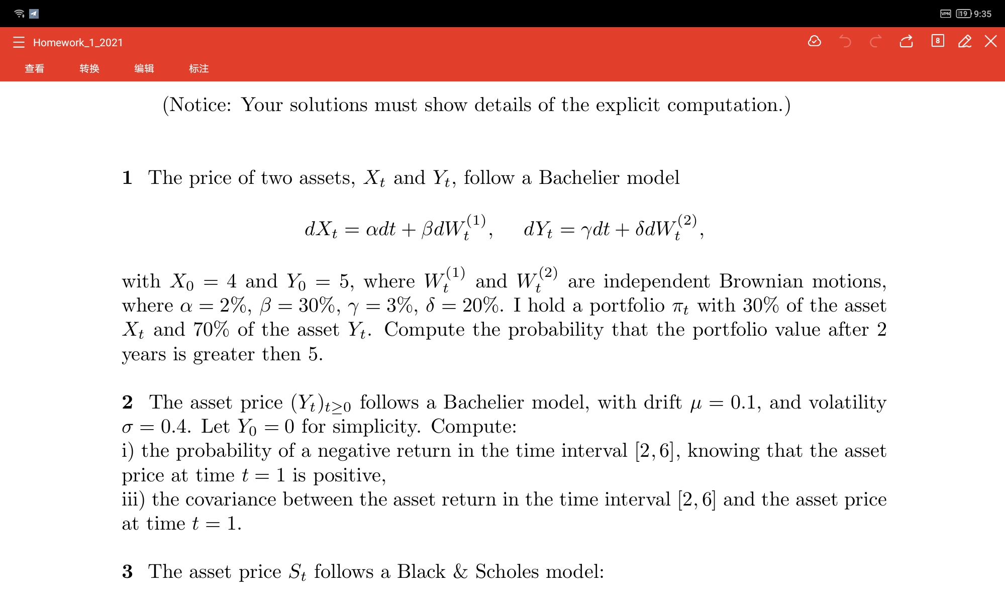 3道数学题目 关于金融数学的