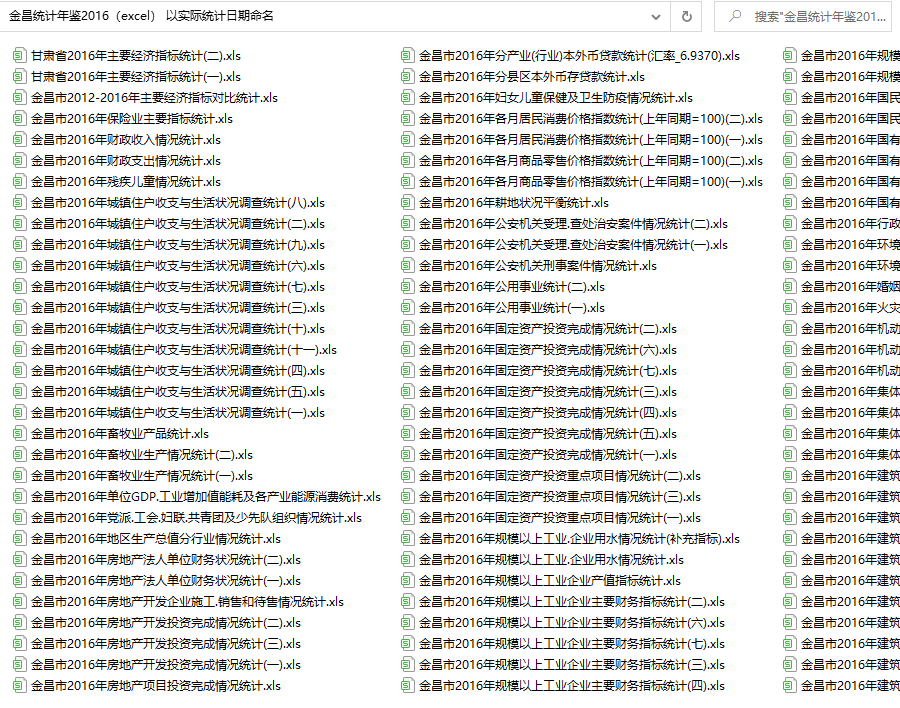 金昌统计年鉴2016(excel) 以实际统计日期命名.rar