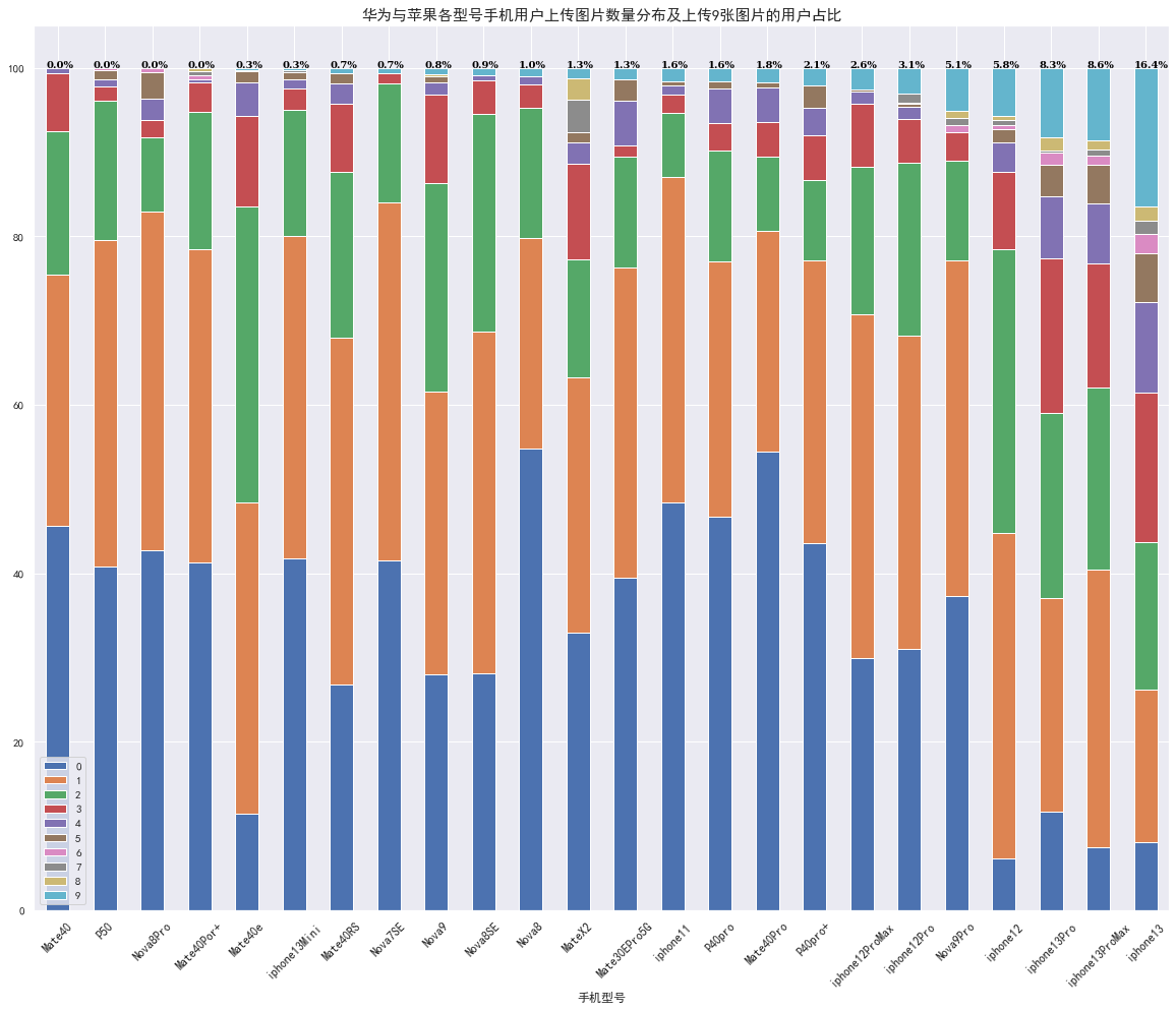 京东最多允许用户上传9张图片和1个视频,从操作层面讲,对于收到新机的用户如果要晒图和视频,往往需要另一个手机的配合,操作难度也比单纯的文字评论有所提高,所以愿意上传图片和视频的用户,往往可以视为重度用户。从晒图比例看,苹果用户远高于华为。
