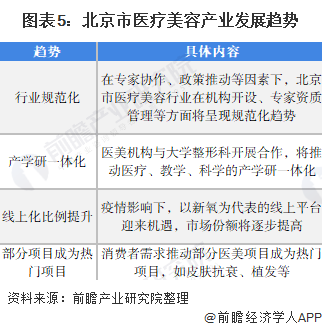 在政策扶持、机构与学院优势明显、以及居民对生活品质要求提升的背景下,预计北京市医疗美容产业将呈行业规范化、产学研一体化等趋势。