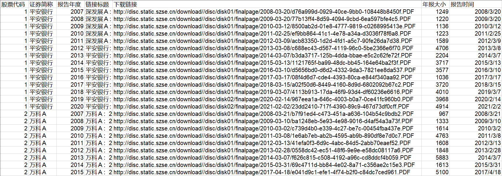 最新上市公司年报PDF文本下载链接2007_2020