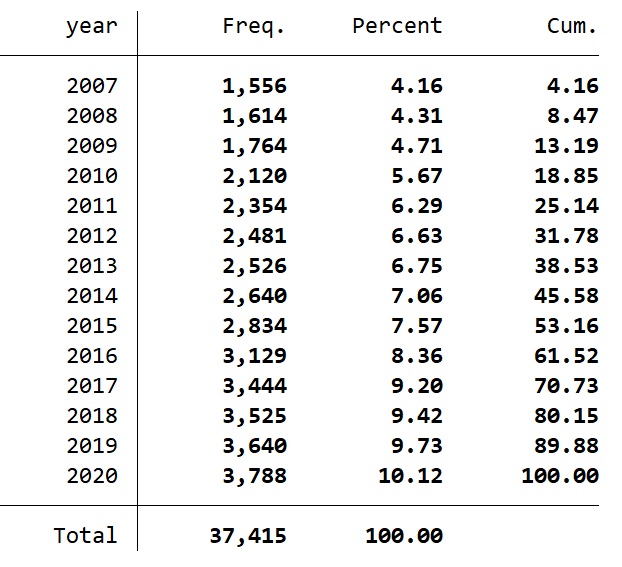 上市公司年报文本的分析和挖掘在财会金融领域变得越来越重要,而年度报告的pdf文本获取是展开文本分析的第一步。笔者利用Python爬取了2007年至2020年沪市(来自巨潮资讯网)和深市(来自深交所)所有上市公司年度报告的信息,主要包括以下变量: