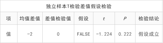 SPSSAU:独立样本T检验差值假设检验结果