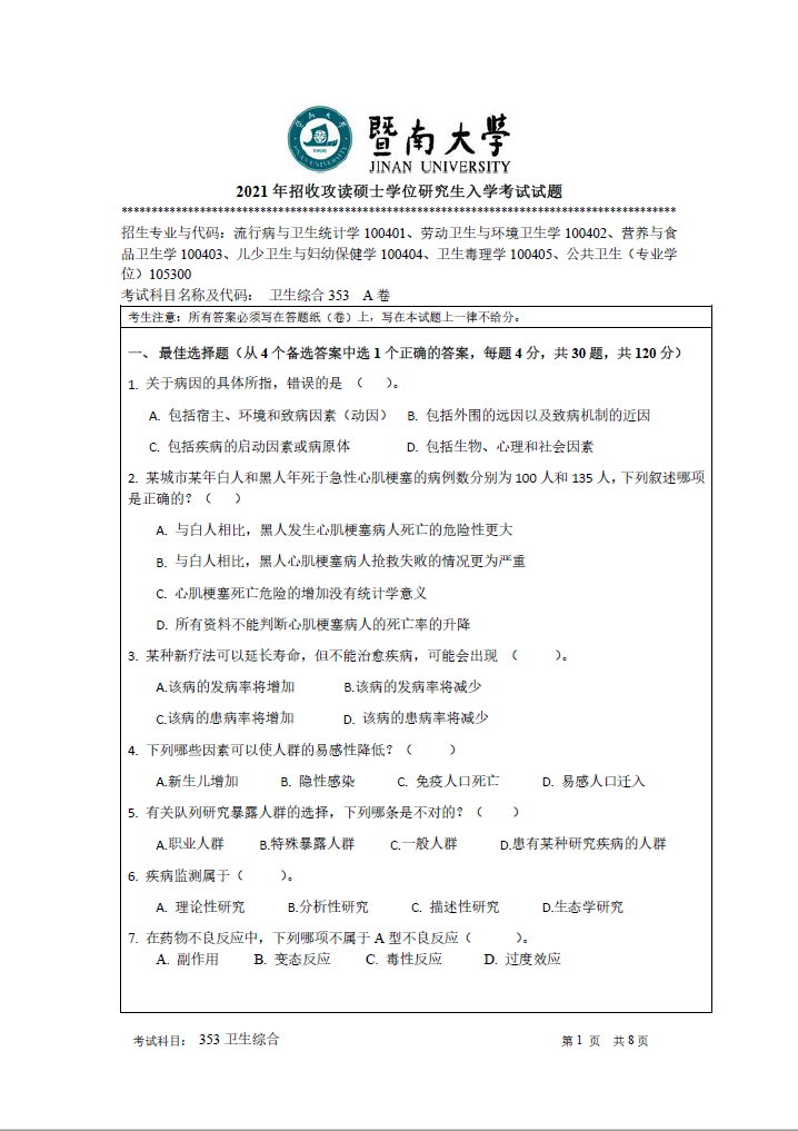 353卫生综合(暨南大学2021年招收攻读硕士学位研究生入学考试试题).pdf