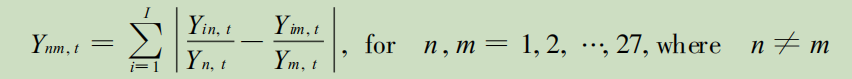 其中, n 、m 表示两个地区, t 表示时间, i 表示行业 。Ynm, t表示的是 :在 t 期, 地区 n 、m 之间的产业趋同 ...