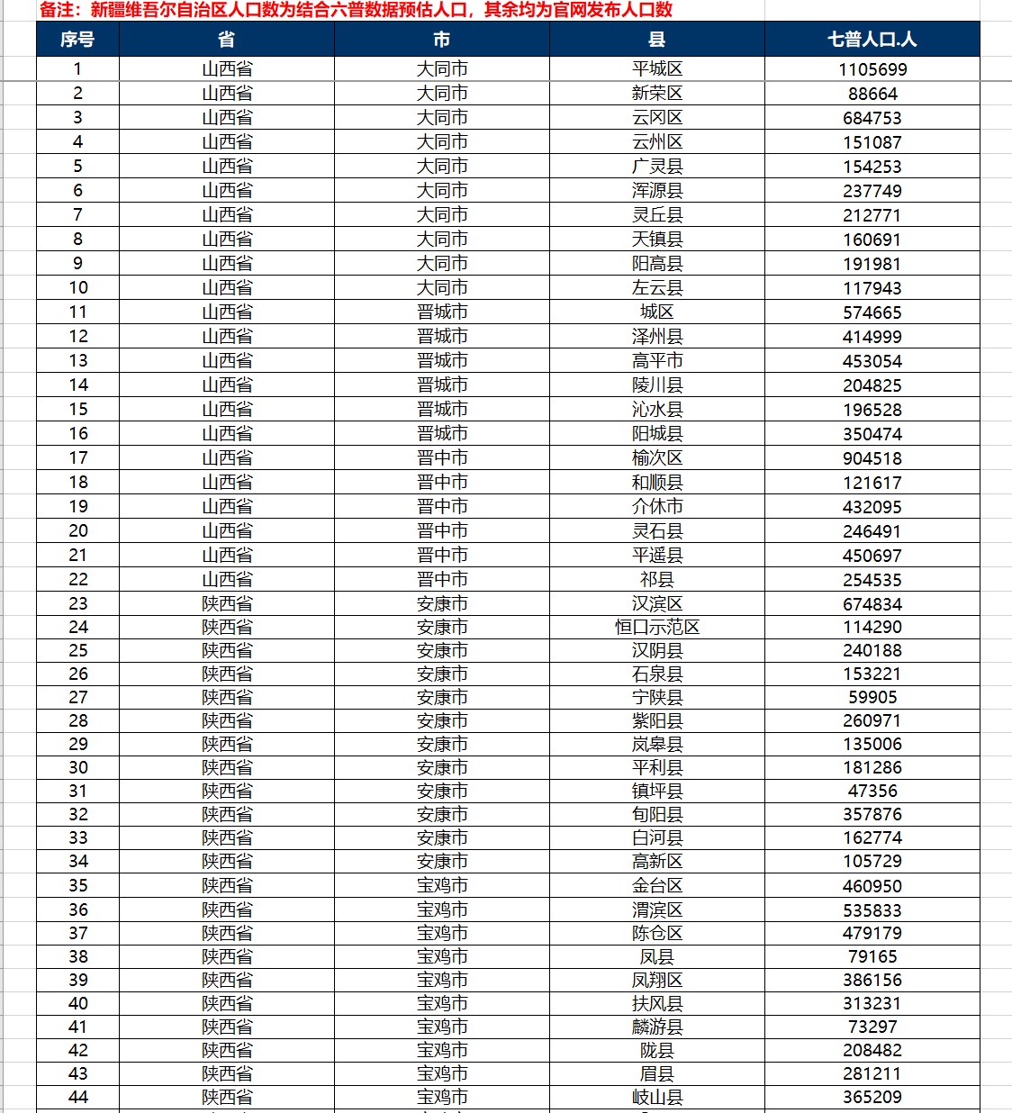 其中新疆维吾尔自治区人口数为结合六普数据预估人口,其余均为官网发布人口数