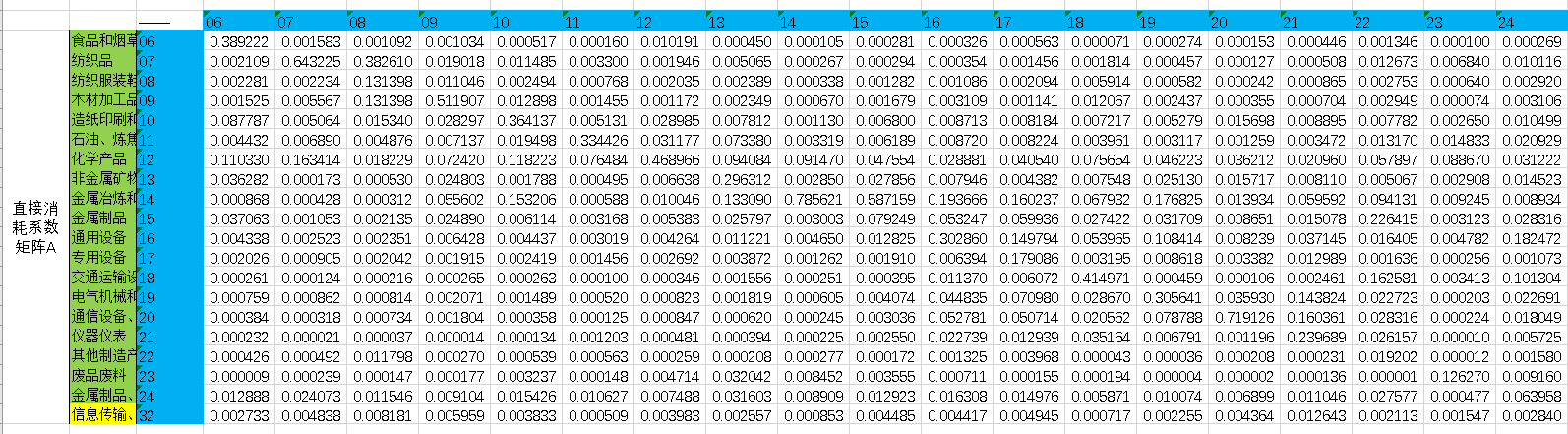 解决了,我在计算中用的不是方阵,计算里昂惕夫矩阵时必须是方阵,只有方阵才能求逆矩阵。