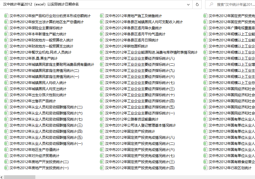 汉中统计年鉴2012(excel)以实际统计日期命名.rar