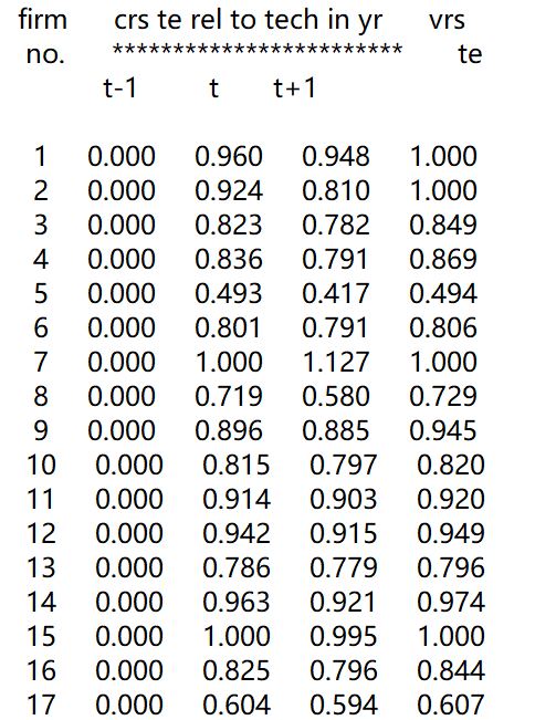 请教一下大佬们,deap的Malmquist指数怎么看牙,第一次写论文,十分生疏,应该用这里的T期指标吗,这里算出来的T+1和T-1怎么理解?