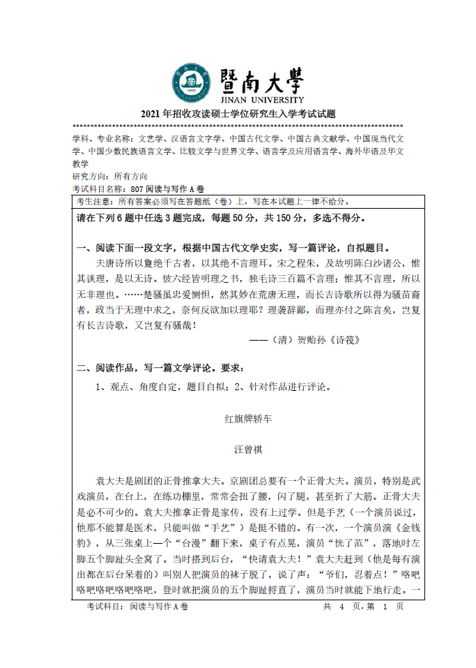 807阅读与写作(暨南大学2021年招收攻读硕士学位研究生入学考试试题).pdf
