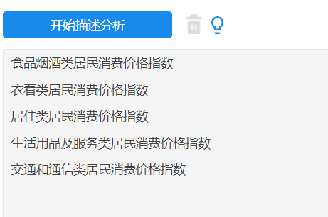 Step1:将分析项拖拽至选框中,点击“开始描述分析”