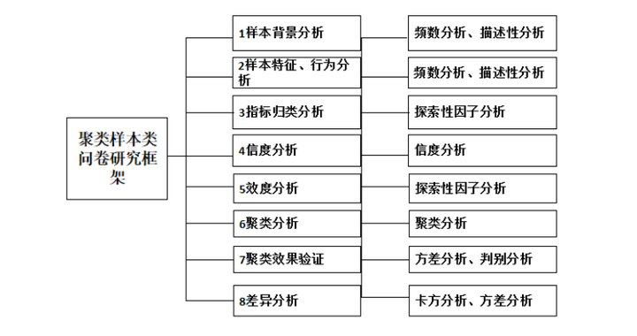 针对聚类样本的特征差异对比,通常是使用方差分析进行对比,如果聚类变量为分类数据,应该使用卡方分析进行对比。通过方差分析或者卡方分析,找出各个类别样本的具体特征差异情况,并且结合不同类别样本的特征情况进行命名处理。如果可以进行有效命名,则说明聚类效果较好,反之则说明聚类分析结果较差,应该返回第二步重新选择聚类类别数量,找出更优聚类结果。
