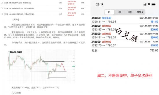 第一单:1790.31进场多,1793.54出局,获利161.50美;