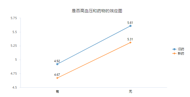 比如研究是否高血压和摄入药物对于胆固醇水平的影响关系。此时需要考虑,在没有高血压与有高血压的两种情况下,研究摄入药物对于胆固醇水平的影响是否有区别。以及在摄不摄入药物的两种情况下,研究高血压对于胆固醇水平的影响是否有区别。