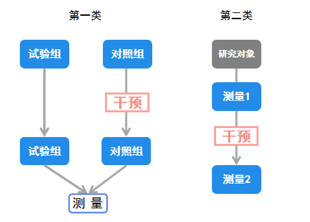 在医学生物研究中,经常会听到“类实验”研究,意思是研究设计中有对研究对象的干预内容,与实验研究不同的是设计内容缺少随机原则分组或不设对照组。