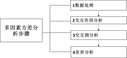 交互效应分析通常使用多因素方差分析,分析步骤如下: