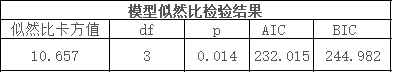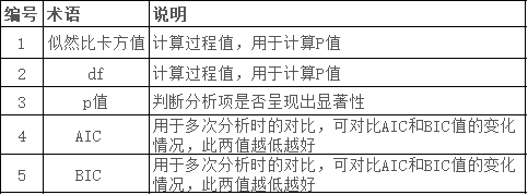 第二:AIC和BIC值用于多次分析时的对比;此两值越低越好;如果多次进行分析,可对比此两个值的变化情况,综合说明模型构建的优化过程;