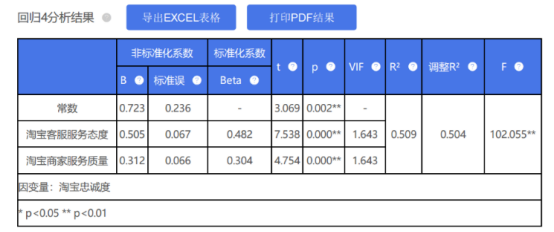 ③ 分析X的显著性;如果呈现出显著性(P值小于0.05或0.01);则说明X对Y有影响关系,接着具体分析影响关系方向;