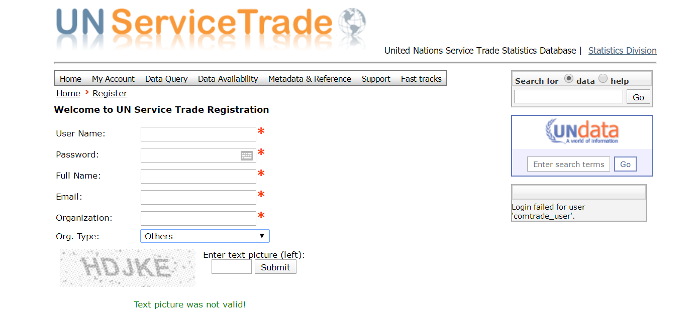 请教各位大神在UN service trade 数据库上查找数据是需要先注册嘛?怎么注册呢?