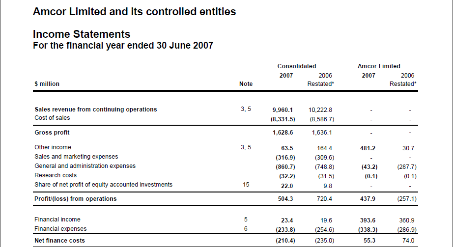 老师要求我们分析AMCOR LIMITED的财务情况,看到该公司报表如下