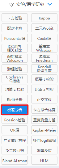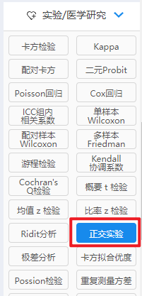 进入SPSSAU,选择【实验/医学研究】-【正交实验】