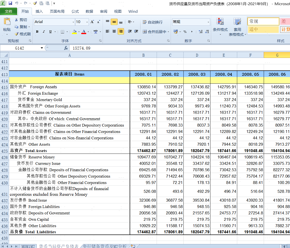 货币供应量及货币当局资产负债表(2008年1月-2021年9月).xlsx