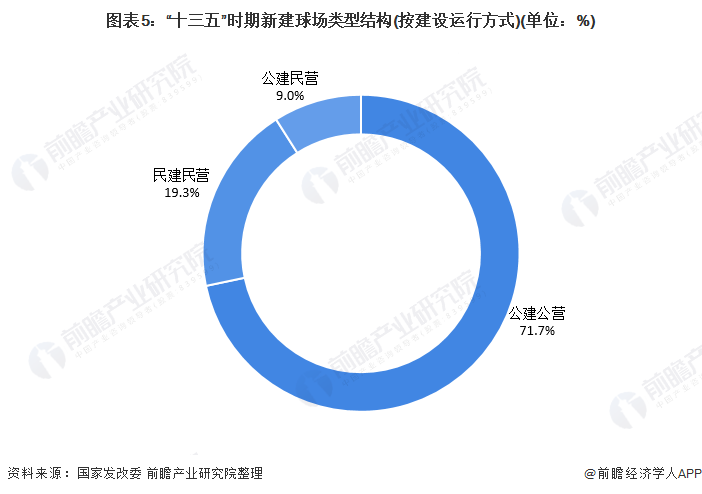 从建设运行方式看,新增社会足球场中,公建公营球场占71.7%,民建民营球场占19.3%,公建民营球场占9%,由社会资本参与建设和运营的社会足球场地较“十二五”时期提升了近3倍,初步形成了政府作用充分发挥、社会力量积极参与的足球场建设运营格局。
