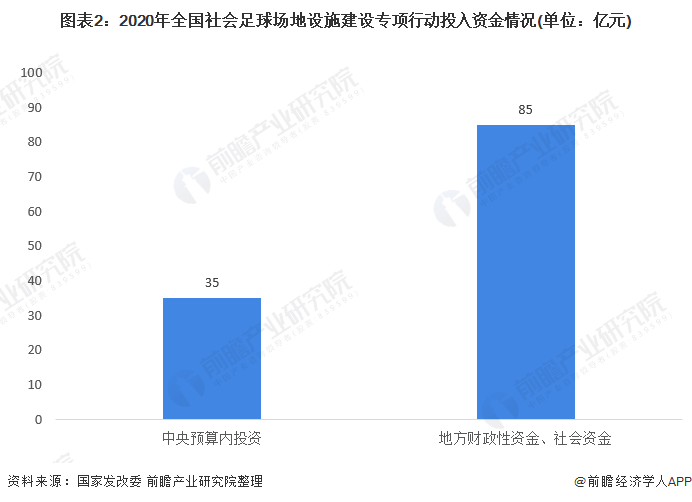 2020年,专门安排中央预算内投资35亿元,比2019年增长233%,重点支持社会足球场地设施建设,成功带动地方财政性资金、社会资金投入约85亿元。