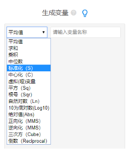 SPSSAU中点击数据处理-生成变量-选择标准化(S),进行数据标准化处理。