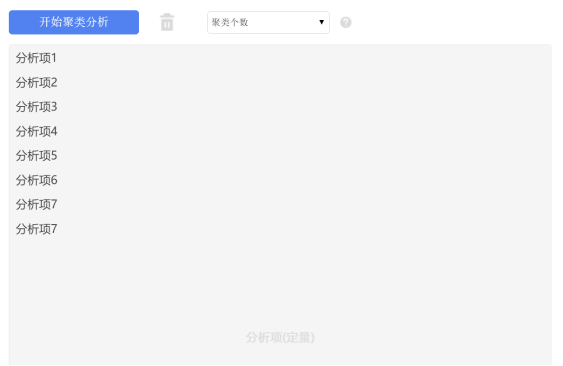 聚类分析(Q型聚类)用于将样本进行分类处理,通常是以定量数据作为分类标准。如果分析人员需要是按样本进行聚类,则使用SPSSAU的进阶方法模块中的“聚类分析”功能,SPSSAU其会自动识别出应该使用K-means聚类算法还是K-prototype聚类算法。