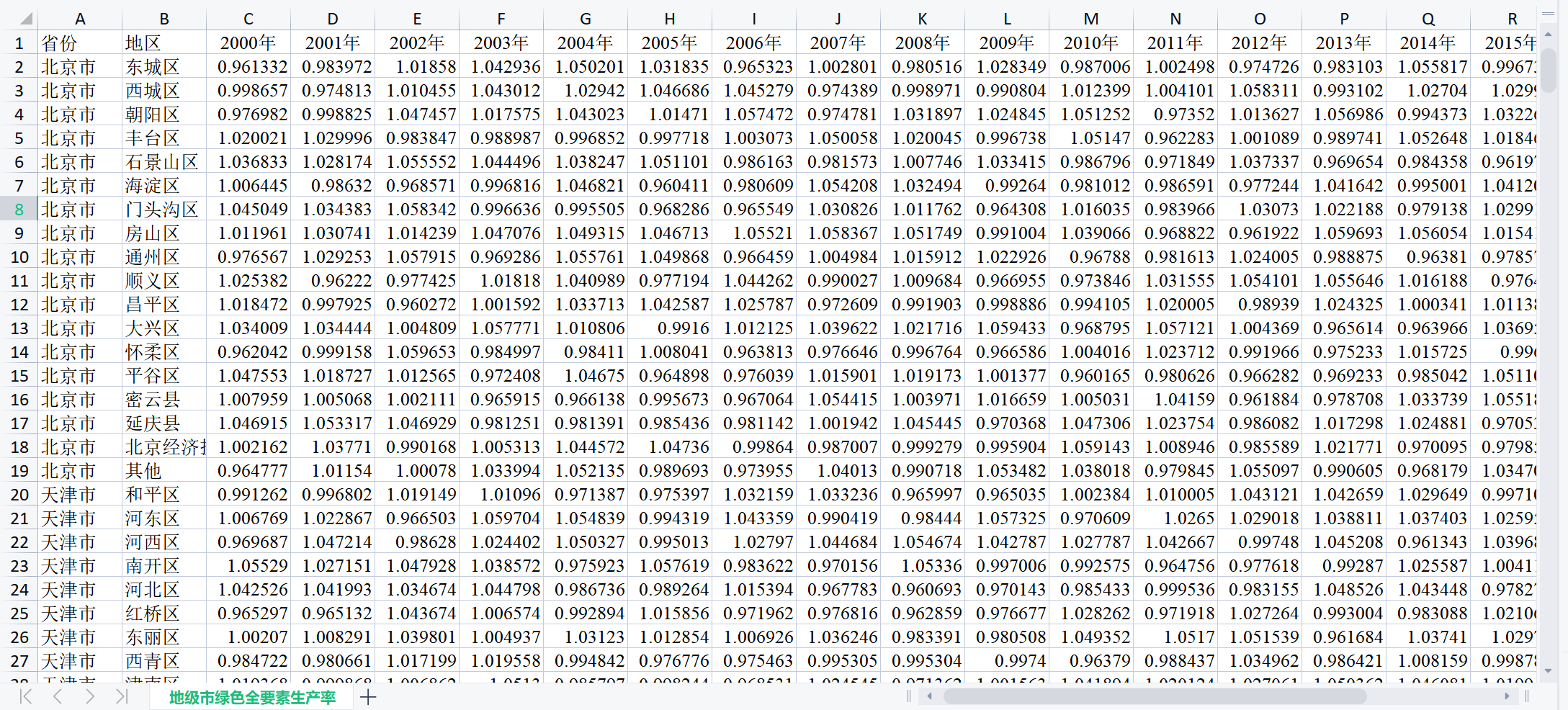 全要素生产率也被称为综合要素生产率,是经济增长领域中的一个重要概念,可以理解为各要素(如资本和劳动等)投入之外的技术进步和能力实现等导致的产出增加,是剔除要素投入贡献后所得到的残差。全要素生产率由于不能直接观测得到,因此在研究中常常需要估计得出。