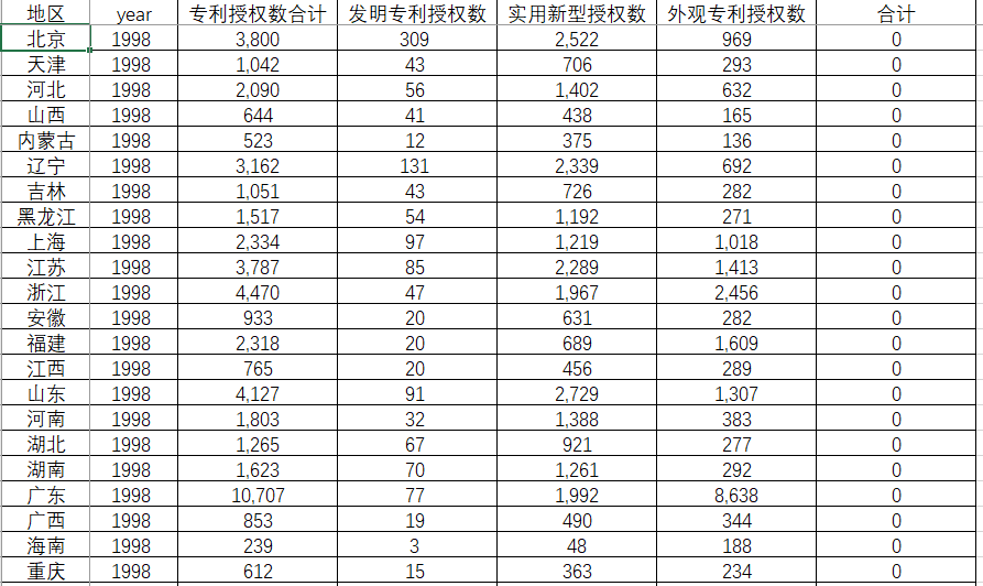 中国省域1998—2020年专利授权数(合计、发明专利、实用新型、外观专利),手工整理!(来源:Wind)欢迎下载购买。中国省域1998—2020年专利授权数(合计、发明专利、实用新型、外观专利)