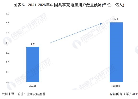从未来共享充电宝的用户情况来看,中国网民规模不断扩大,其中使用手机上网的移动互联网用户占比不断提高,为共享充电宝发展提供了最基本的充电需求,同时中国推进智能制造、智慧城市、智慧生活等建设发展,智能设备的增多,可穿戴设备的发展为共享充电宝发展提供了巨大了市场空间,带来了重大发展机遇。根据用户数量历史变化情况,中国共享充电宝用户数量未来将进一步增加,按照增速预计2026年,中国共享充电宝用户数量将达到6.1亿人。