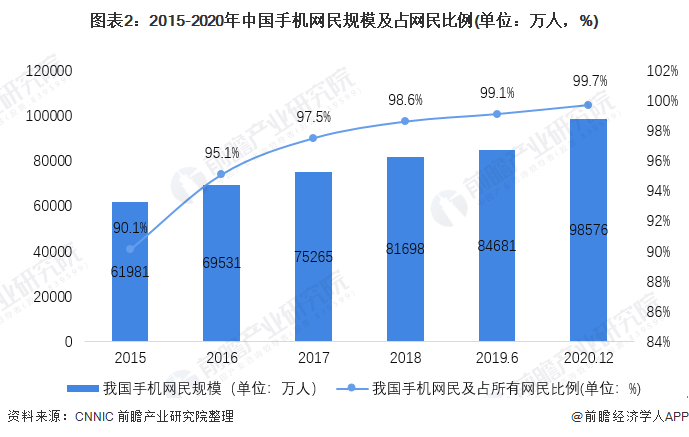 除互联网网民外,2012-2020年,我国手机网民规模也逐年上升。截至2020年12月中国手机网民规模为9.86亿,较2020年3月新增手机网民8885万,网民中使用手机上网的比例为99.7%,中国已经完成了移动互联网的全面渗透。互联网及移动互联网的普及进一步地刺激我国网络动漫的发展。