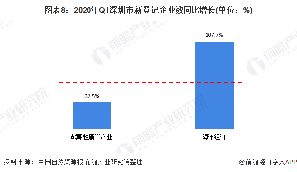同时,在相关政策的驱动下,深圳海洋经济企业规模迅速增长,数据显示,2020年一季度,深圳市海洋经济企业的新登记数量同比增长107.7%,远高于战略性新兴产业企业的增速,目前深圳涉海企业目前有7000多家