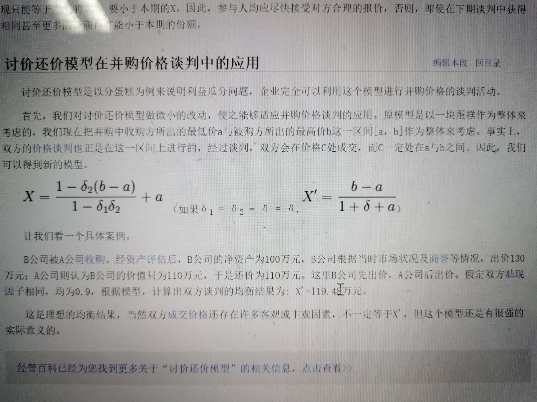 讨价还价模型在并购价格谈判中应用怎么求啊